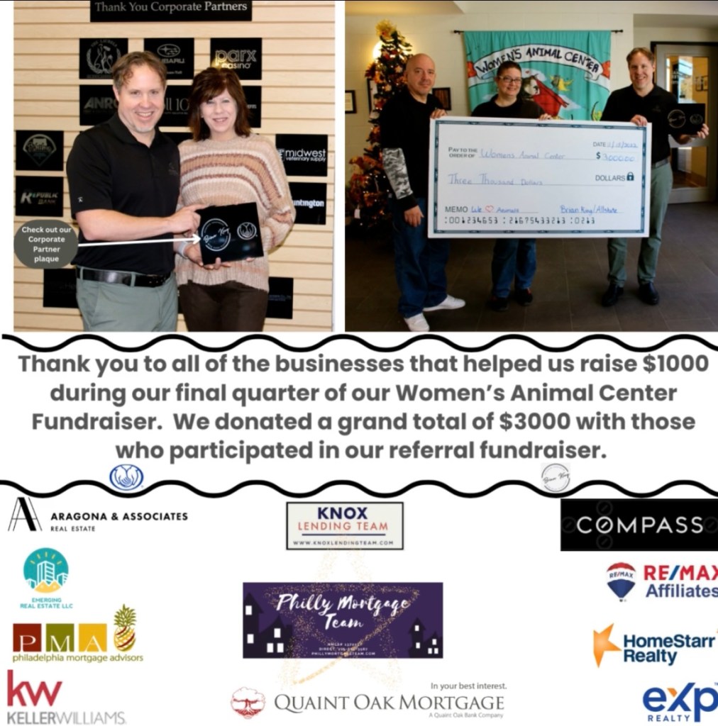 Thank you to all of the companies that have participated in our final quarter with this outstanding facility and their compassionate mission to take care of surrendered animals until they find their forever family. A special thank you to Kevin Berju for sending over the most referrals during the quarter for a total of 5!!!
